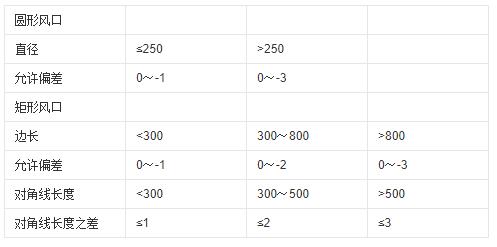 表2風(fēng)口尺寸允許偏差單位:mm